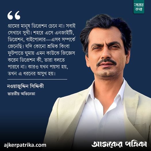 ২। অভিনেতা নয়াজুদ্দিন বলেছেন গ্রামের লোকদের ডিপ্রেশন নাই।